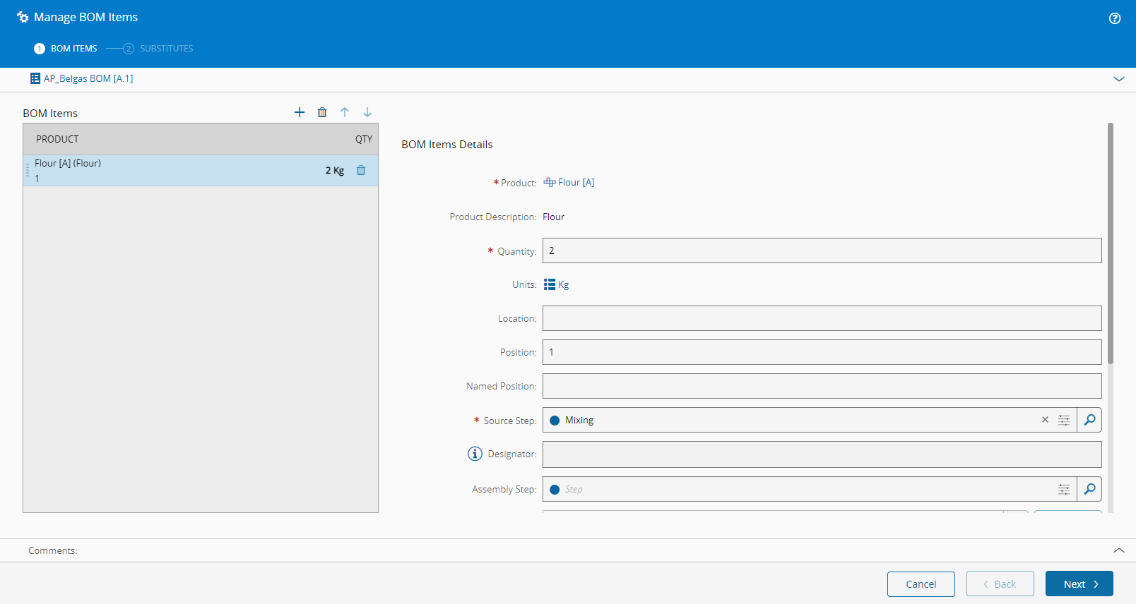 - Usage Step - specify the Step where the consumption must take place (optional). *Logical Flow Path** - define the logical flow path for the BOM item (optional).
