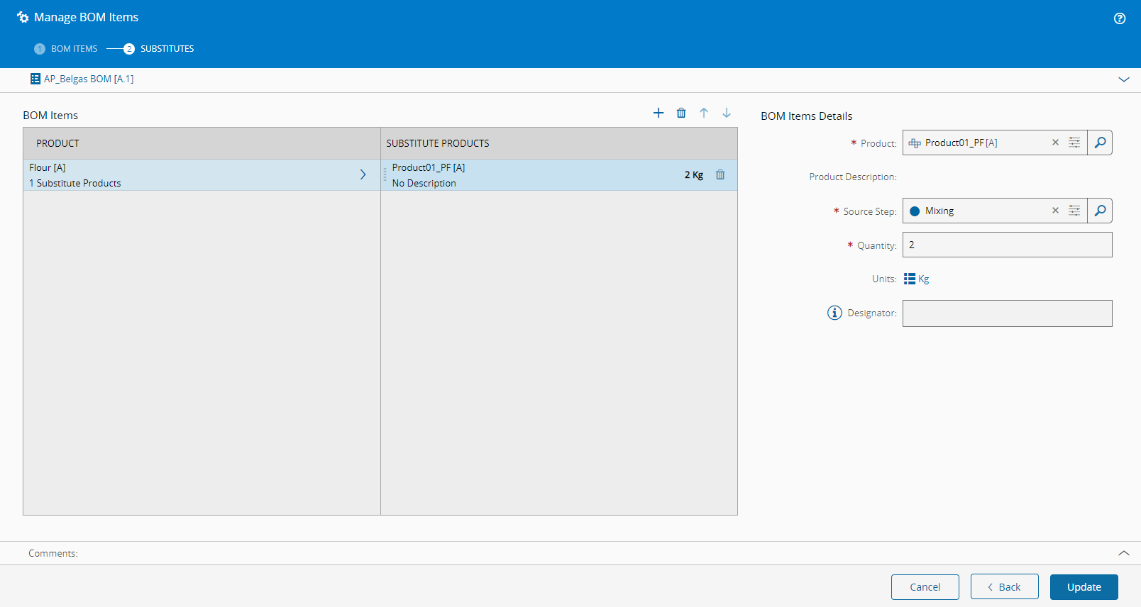 - The substitute Product Quantity, which is necessary to make a unit of the target Product (can be Decimal).
