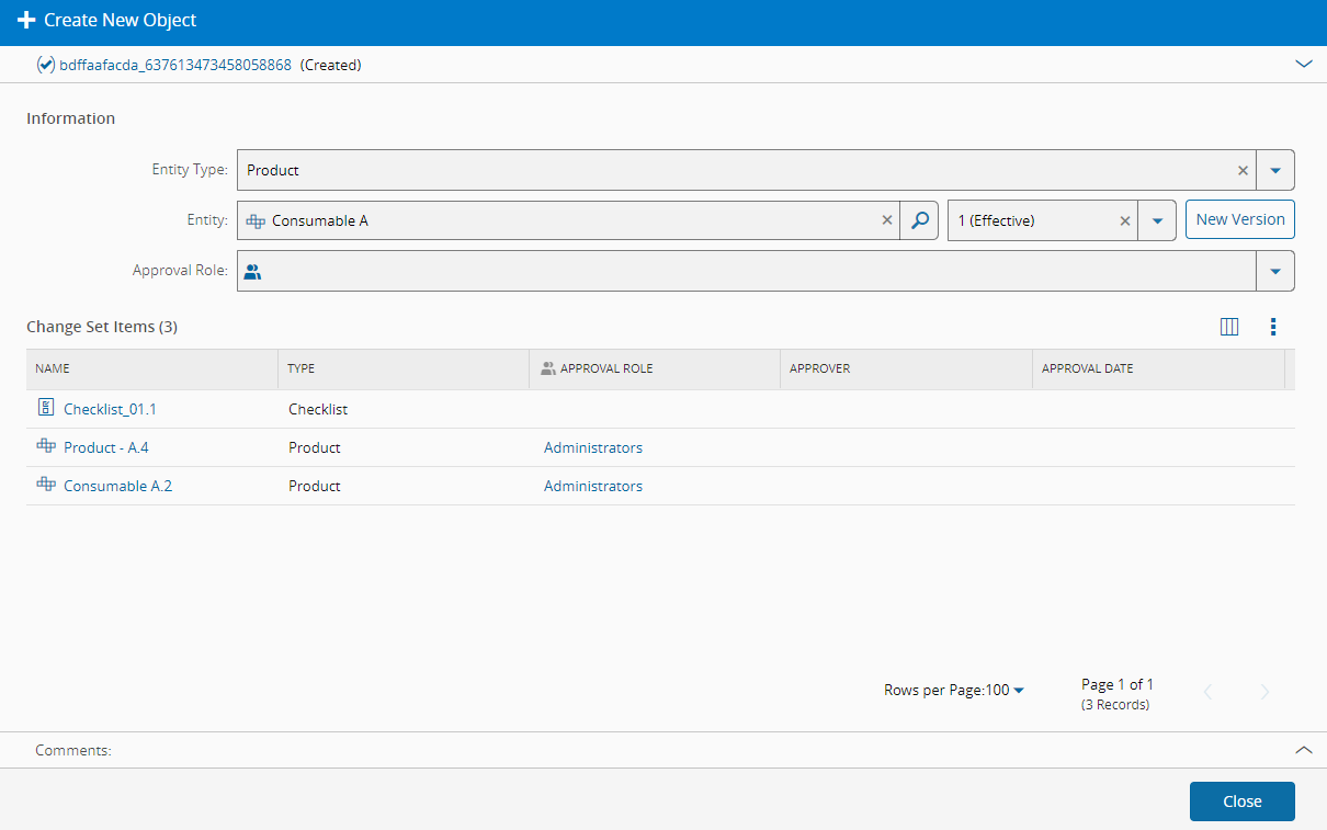 - If you want to create a new version for an existing object, select the Entity Instance from which you want to create a new version and select the New Version button.