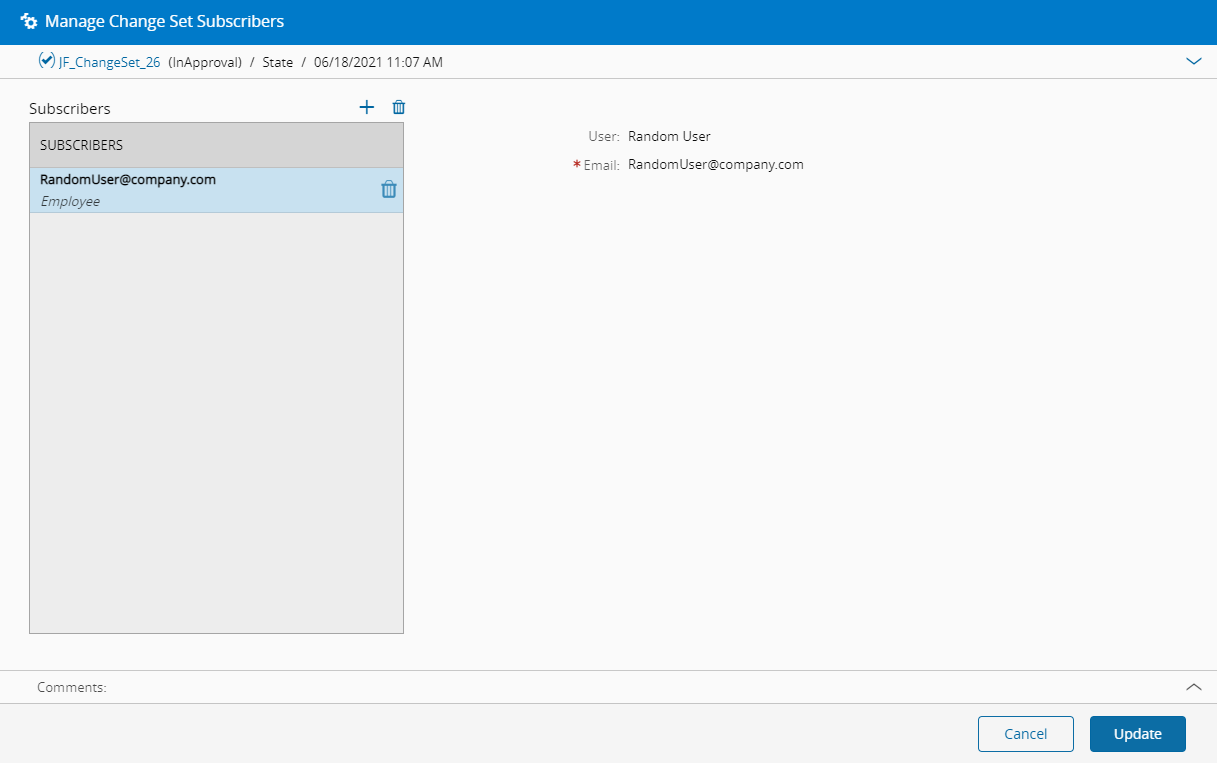 This operation is used to manage the list of subscribers of a Change Set by adding or removing a specific user.