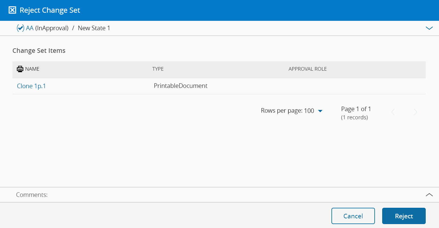 - Click Reject to complete the operation and the system will confirm that the Change Set has been rejected.