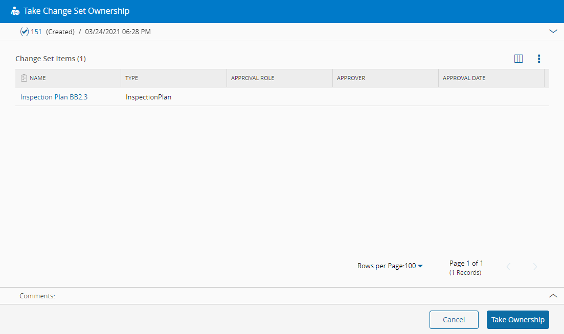 - By clicking Take Ownership, the Change Set owner will be changed to the Employee that performs the operation.