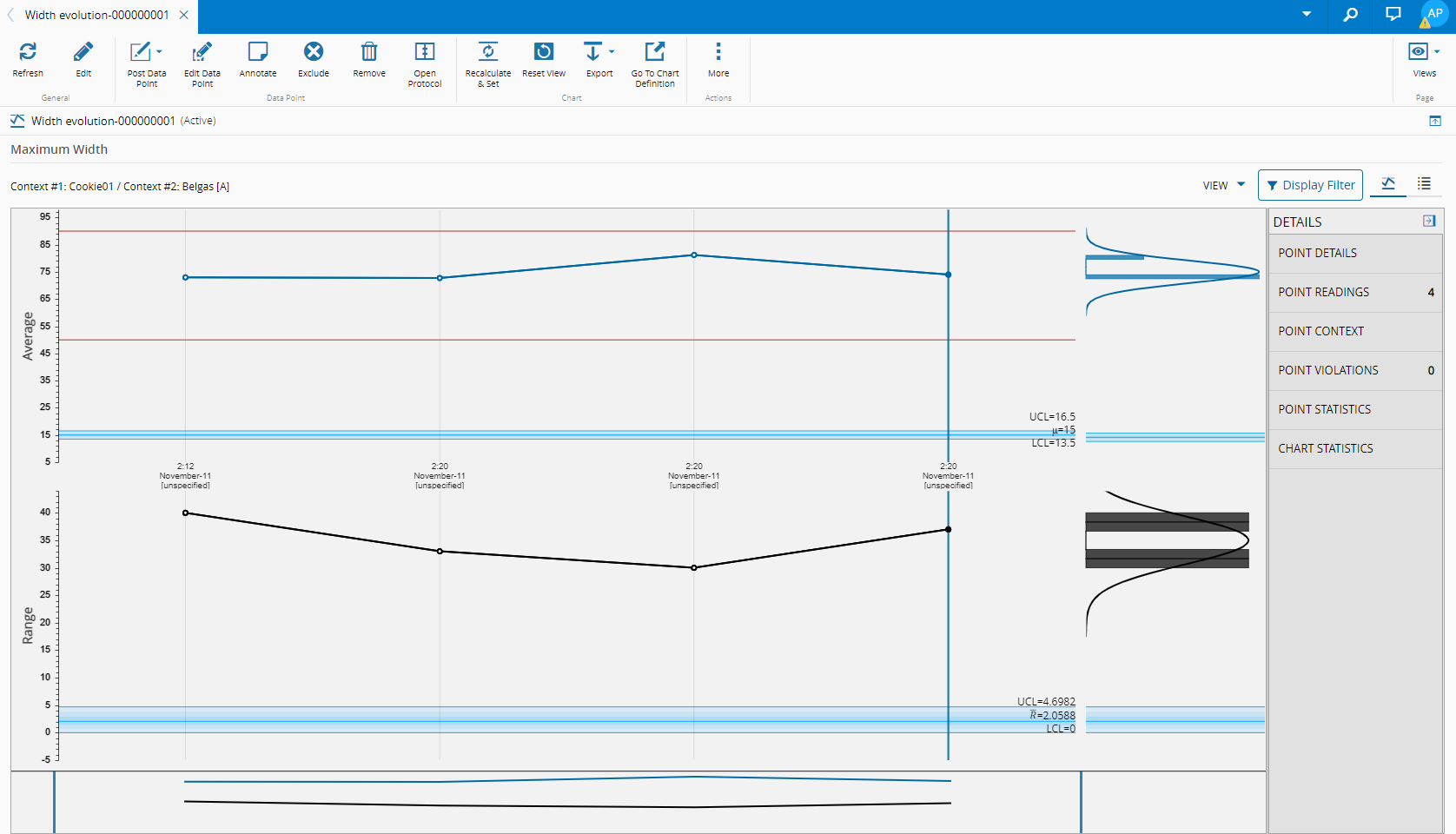 - Point Details - indicates basic point information, including point values, control limits and spec limits.