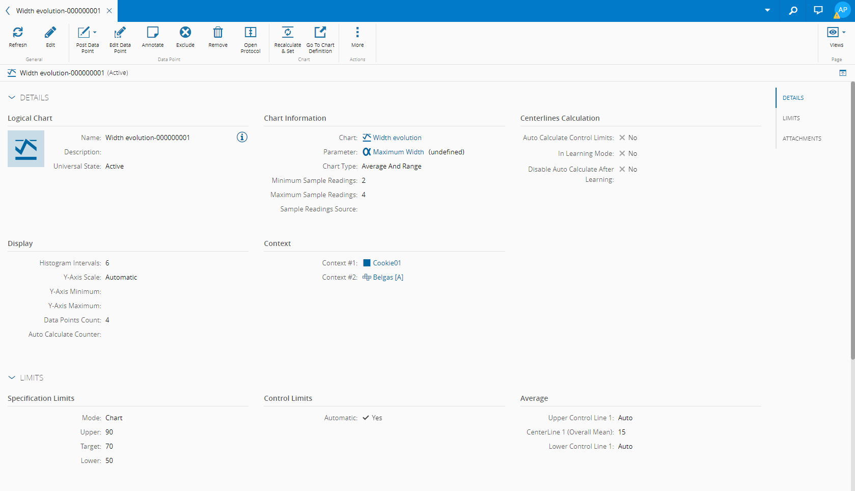 - Limits - displays general information on the specified limits.