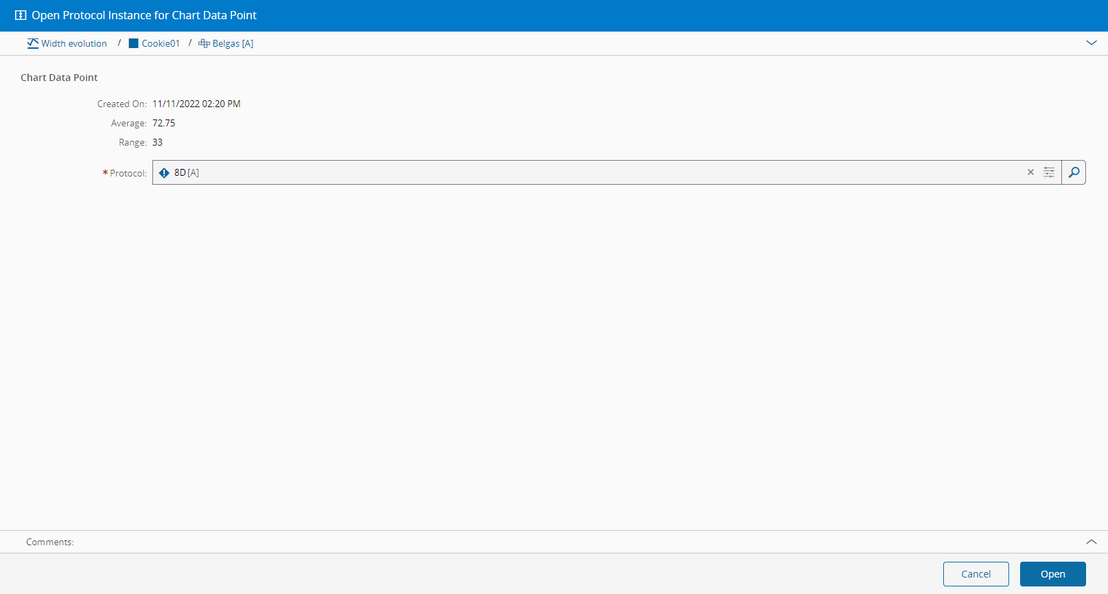 - Select Open Protocol to open the Open Protocol Instance for Chart Data Point wizard.