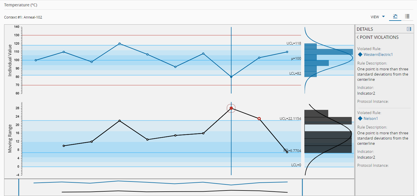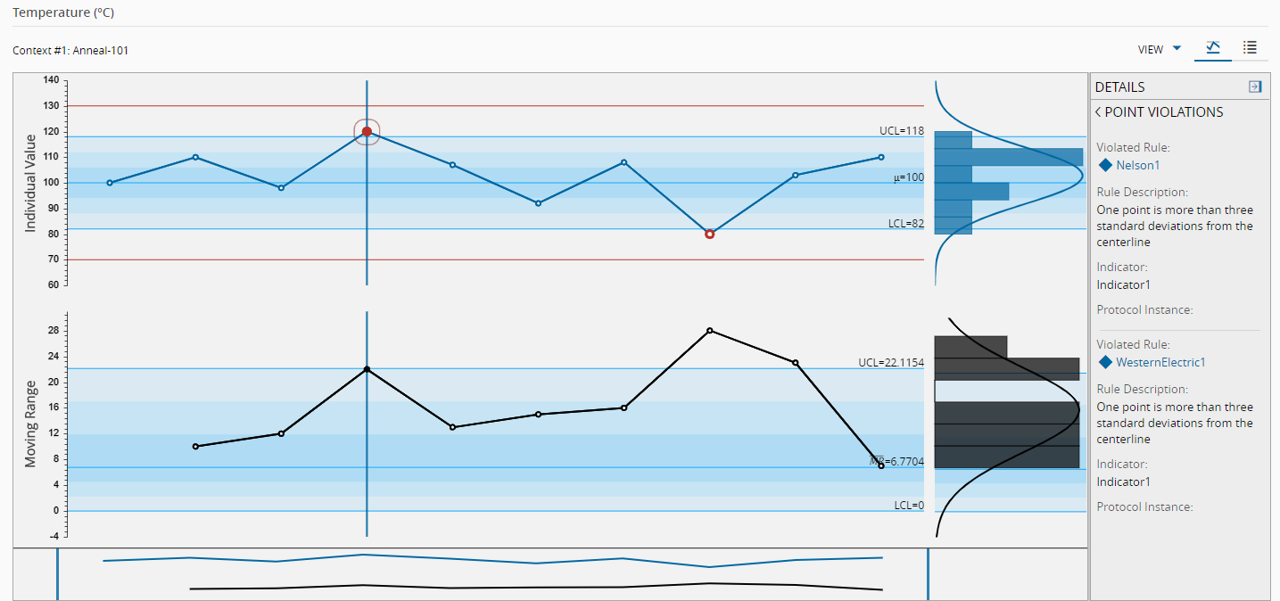 One point is more than three standard deviations from the centerline (same as WesternElectric1/).