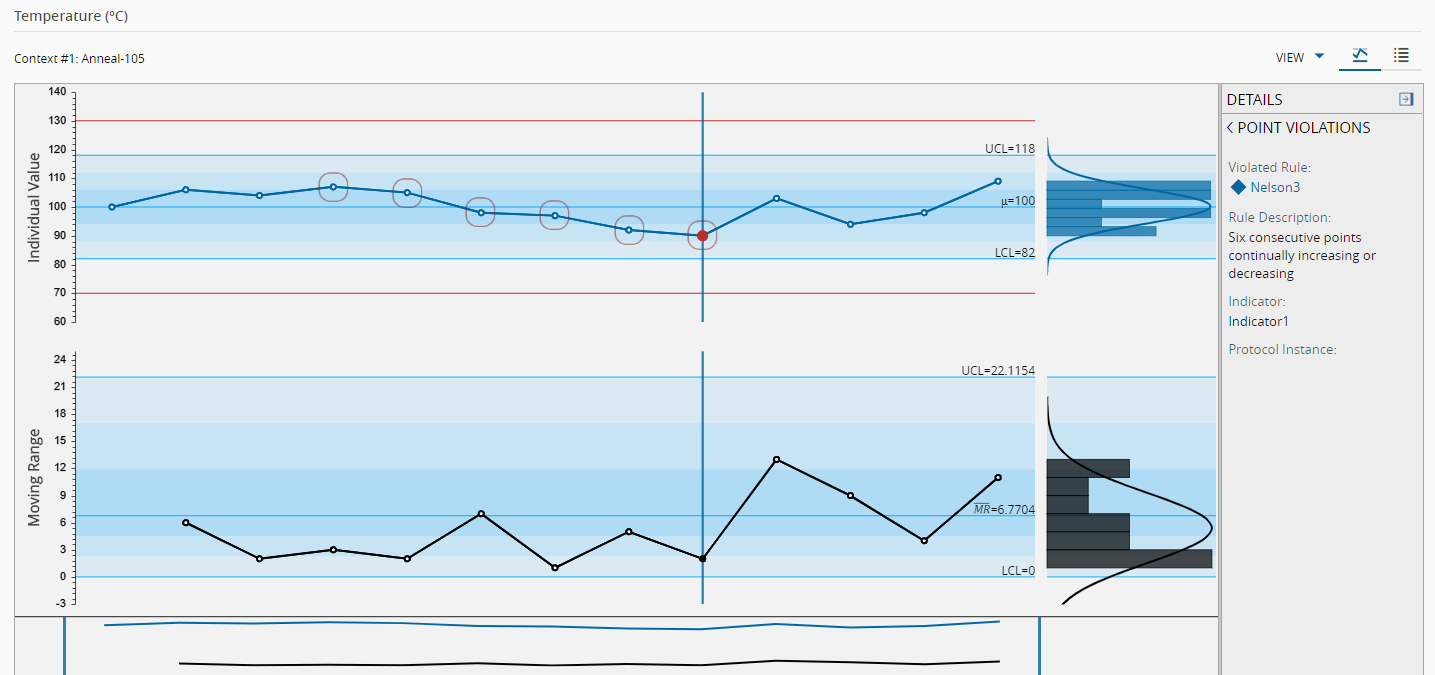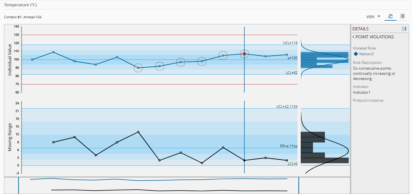 6 consecutive increasing or decreasing points.