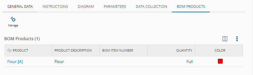 If a BOM was defined, you can specify a list of BOM Products for the Checklist item and provide the following for each item: