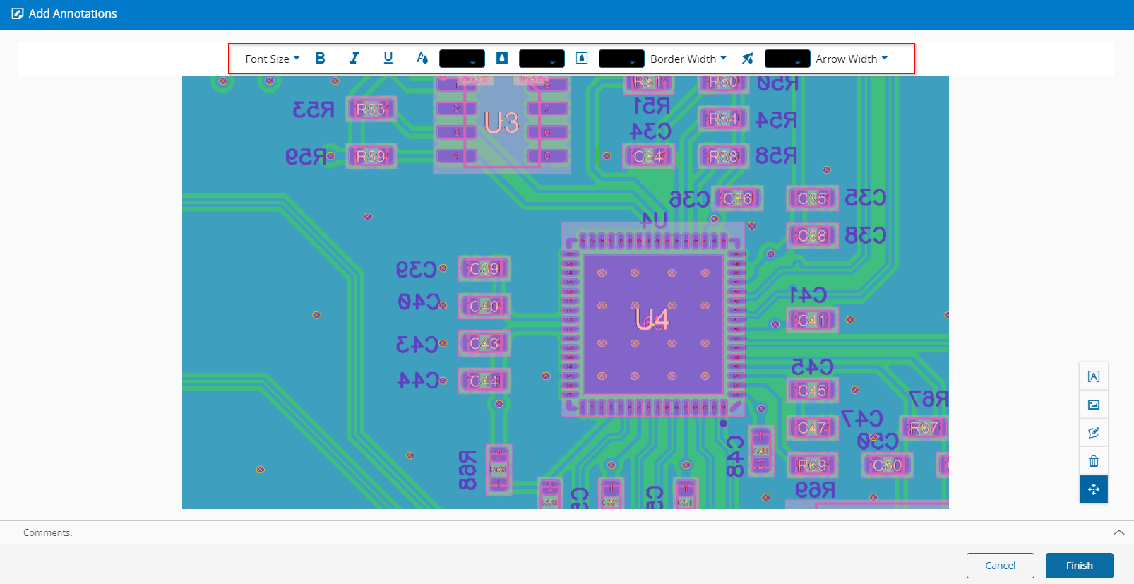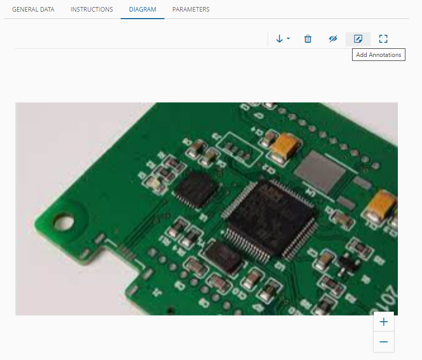 After uploading the file, you can annotate the diagram directly over it, using a simple annotation tool within the same tab. By selecting the file you want to annotate you access the icon to open the Add Annotations dialog:
