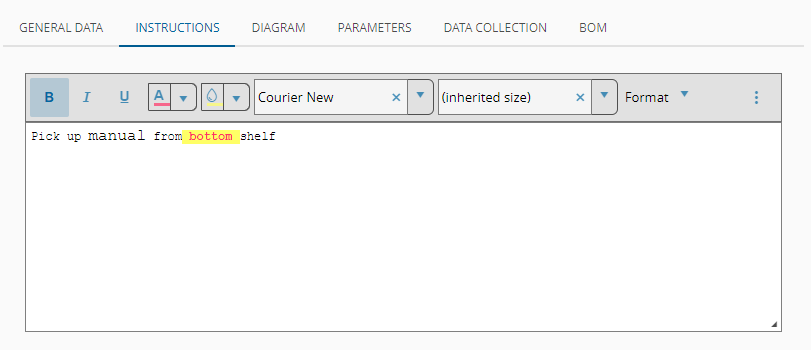 You can define instructions to be performed. This can be formatted in rich text in the editor.