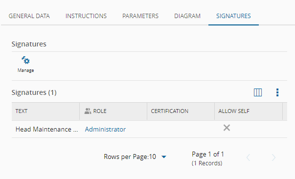 The Signature Activity Type will display a new tab called Signatures so that you can add the signatures that are allowed to sign the checklist item.