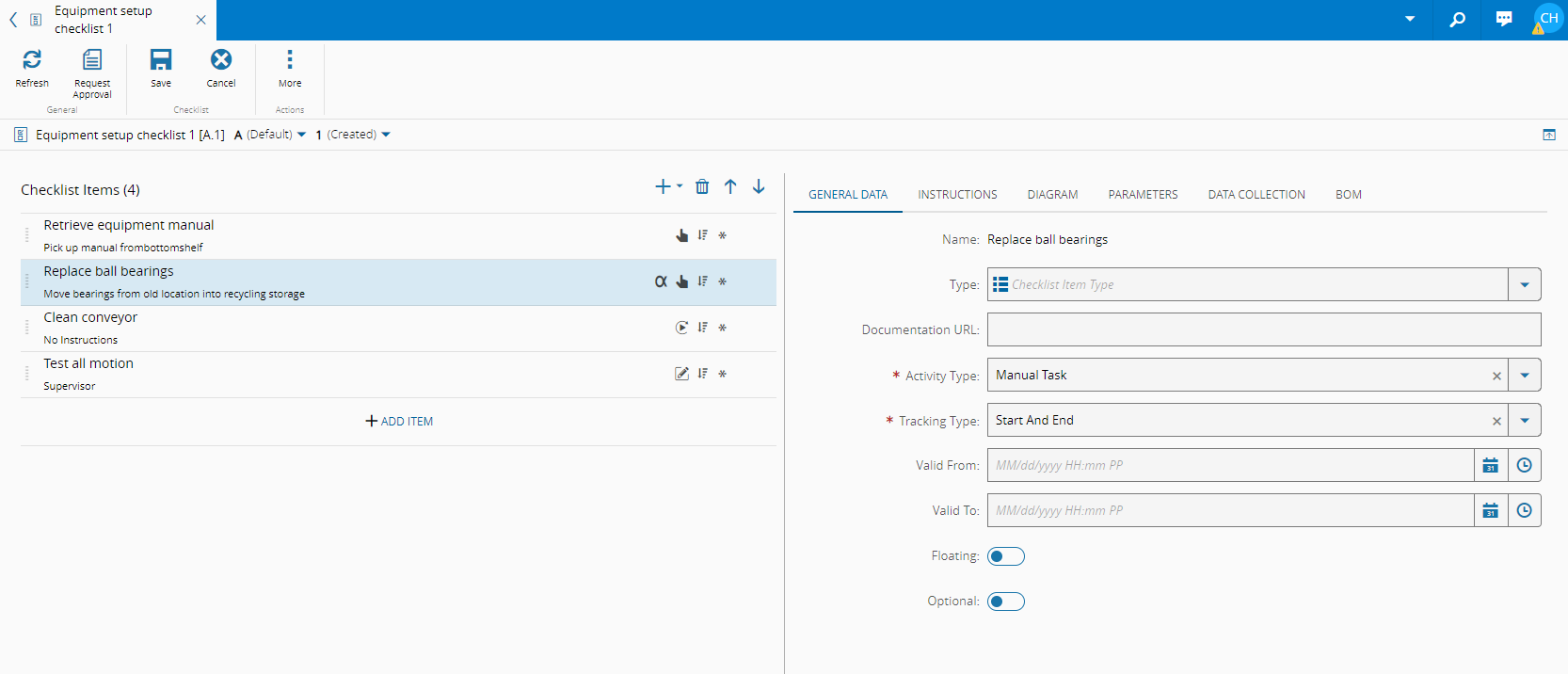 Specify whether the checklist item is Floating or not. A floating item can be performed at any time whereas a non-floating item needs to be executed in a sequence.
