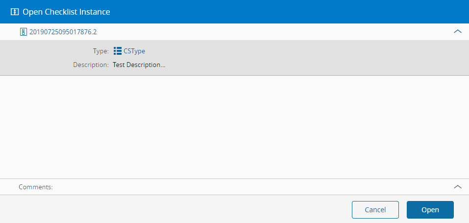 Usually a Checklist is not opened directly by the end user, but rather by the system itself in the context of other modules, such as Exception Management and Maintenance Management.
