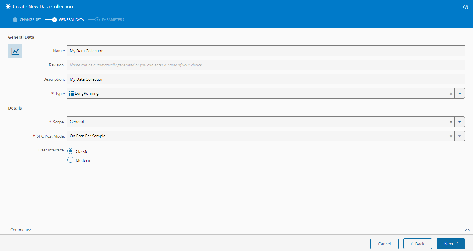 - Select the Data Collection type. The list of possible values is taken from the DataCollectionType lookup table.