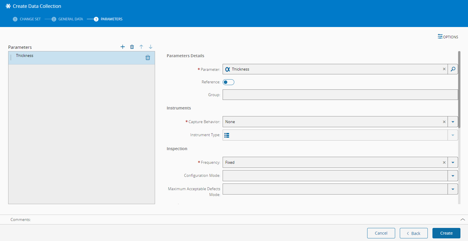 - Whether the parameter is a reference in the Data Collection.