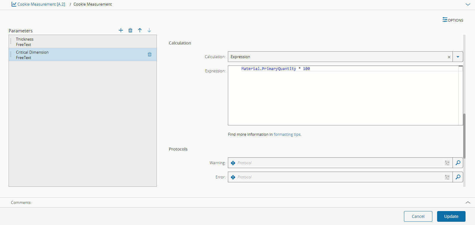 Material.PrimaryQuantity * 100 - Accessing a Material attribute: