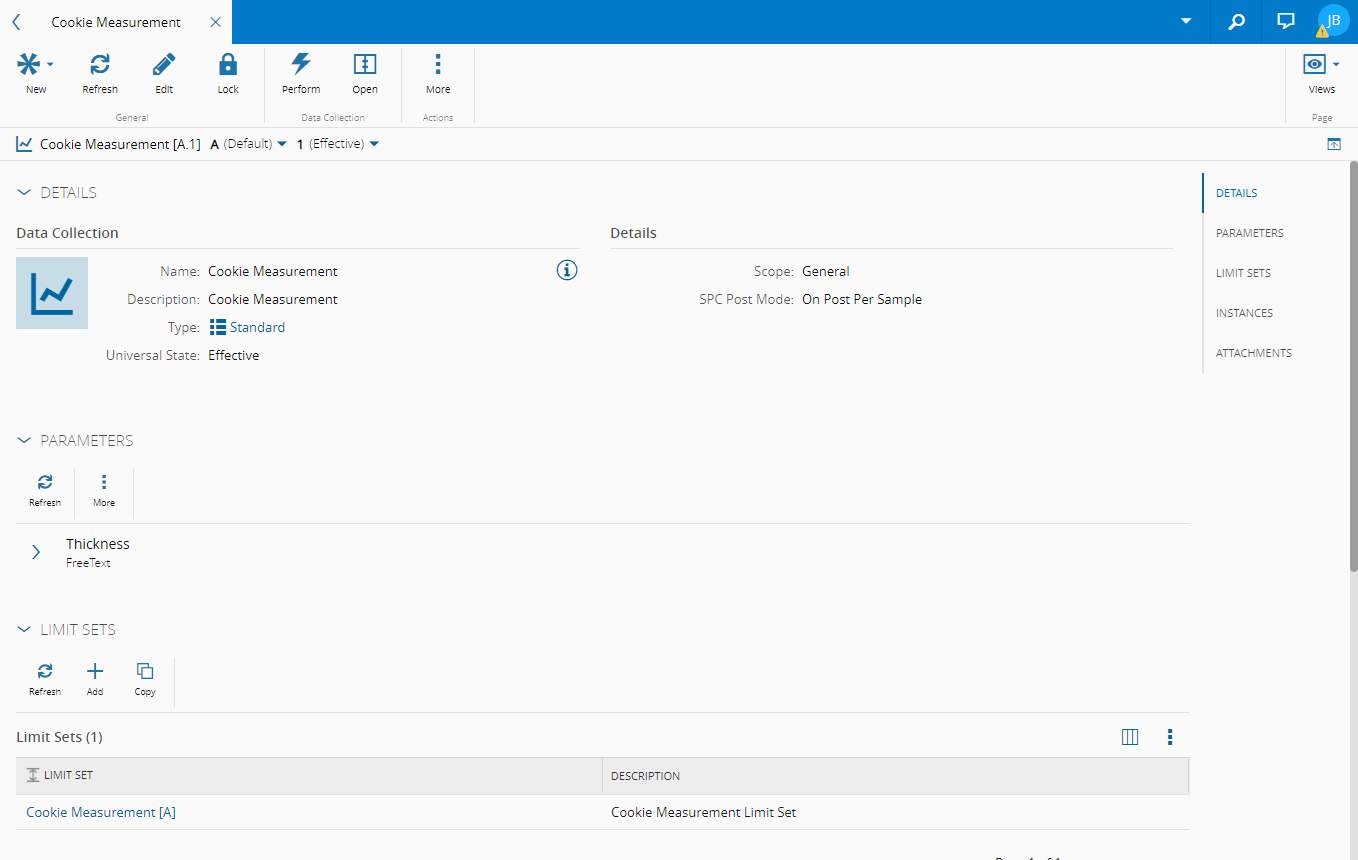 - Limit Sets - displays information on the Data Collection Limit Sets that are associated to the Data Collection.