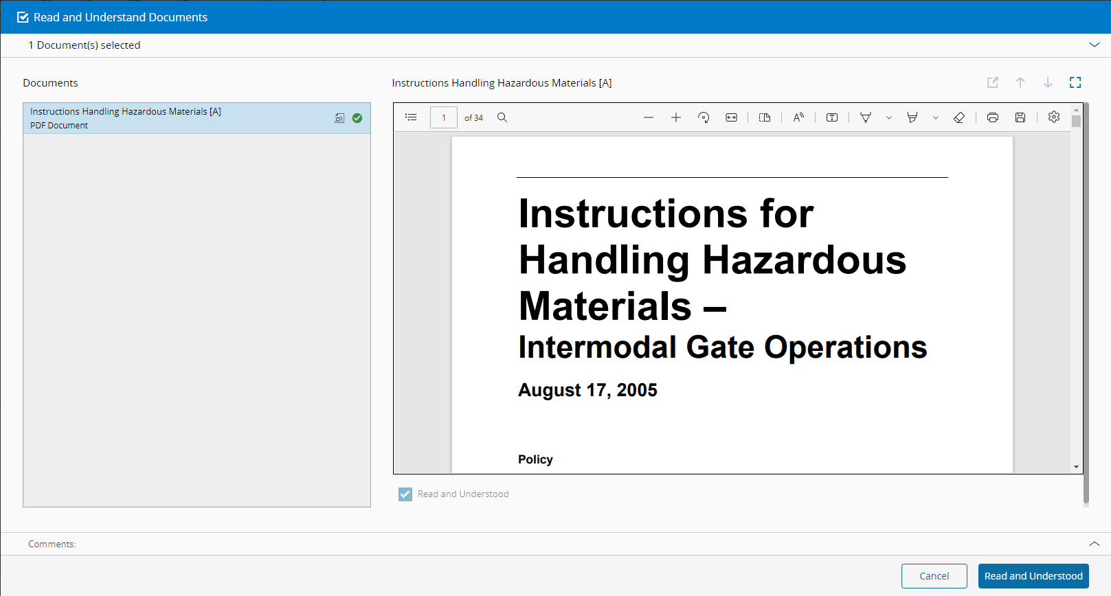 - Employee has not yet performed the Read and Understand for this particular document version.