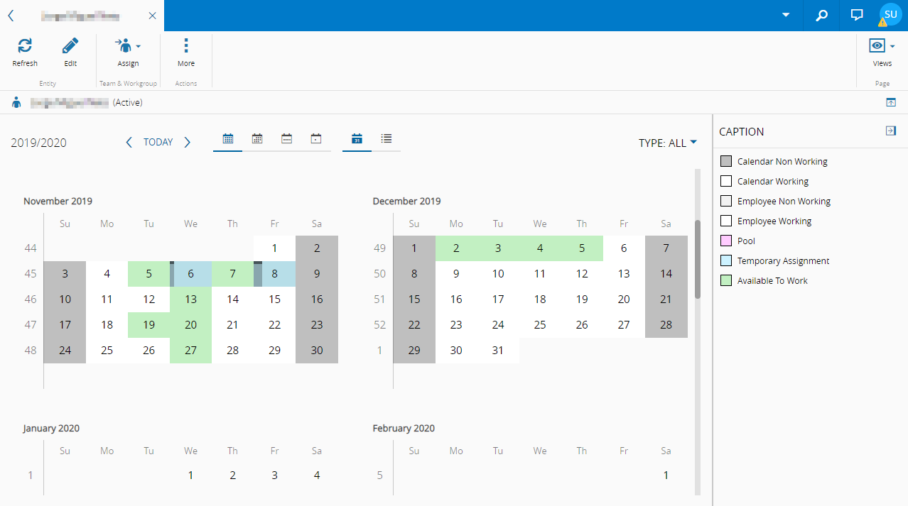 Calendar view of the Employee page