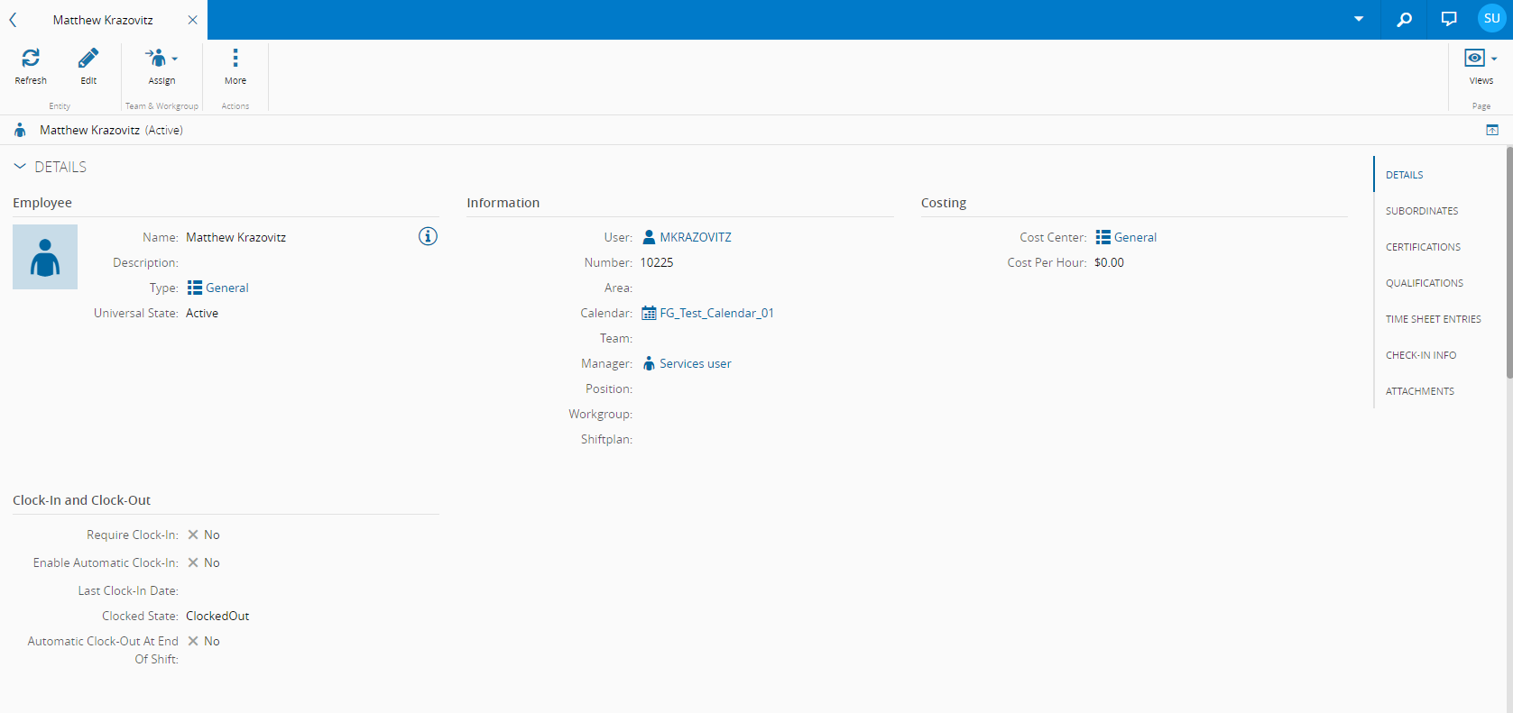• Details - displays general information on the Employee.