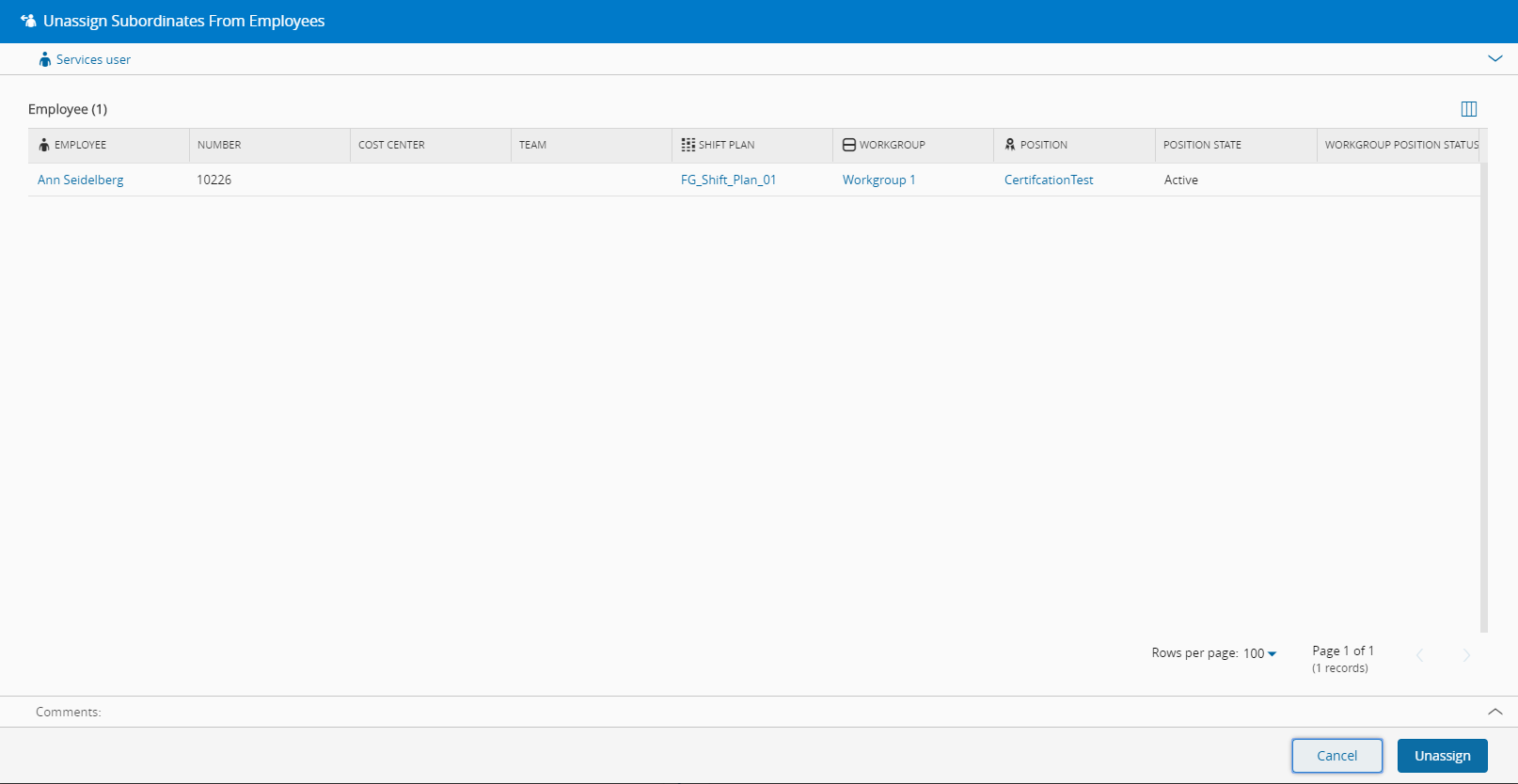This operation removes the assignment of subordinates from the selected Employee.