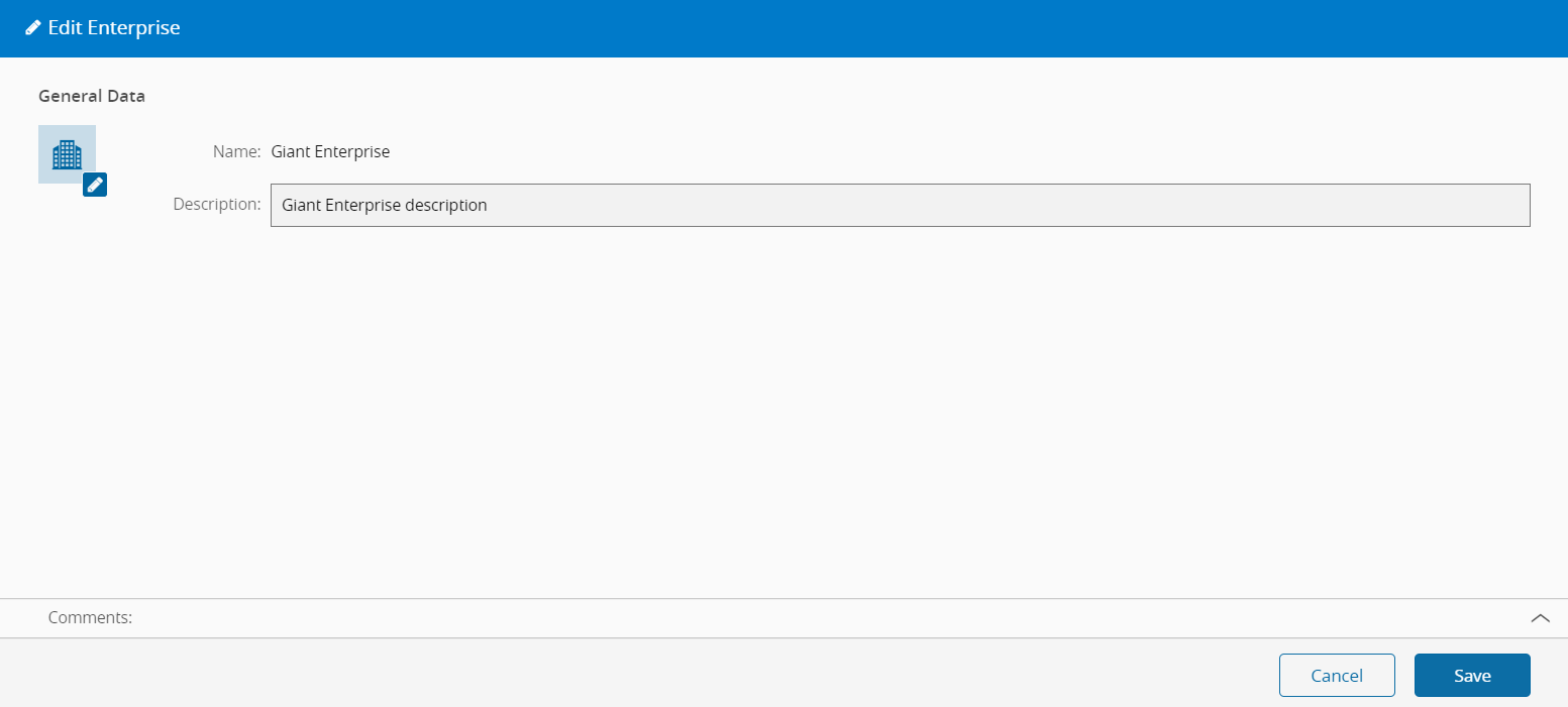 The Edit Enterprise wizard can be called from the Enterprise page within the Business Data Group.