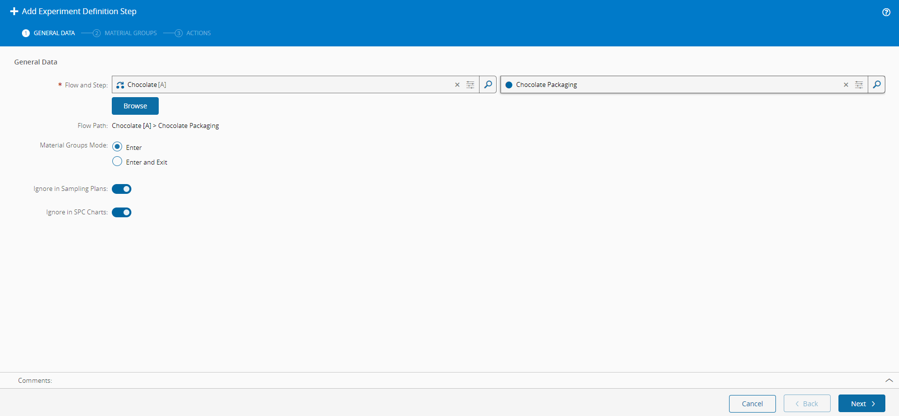 true). - Ignore in SPC Charts - determine if the execution of the Experiment must ignore predefined SPC Charts (defaults to