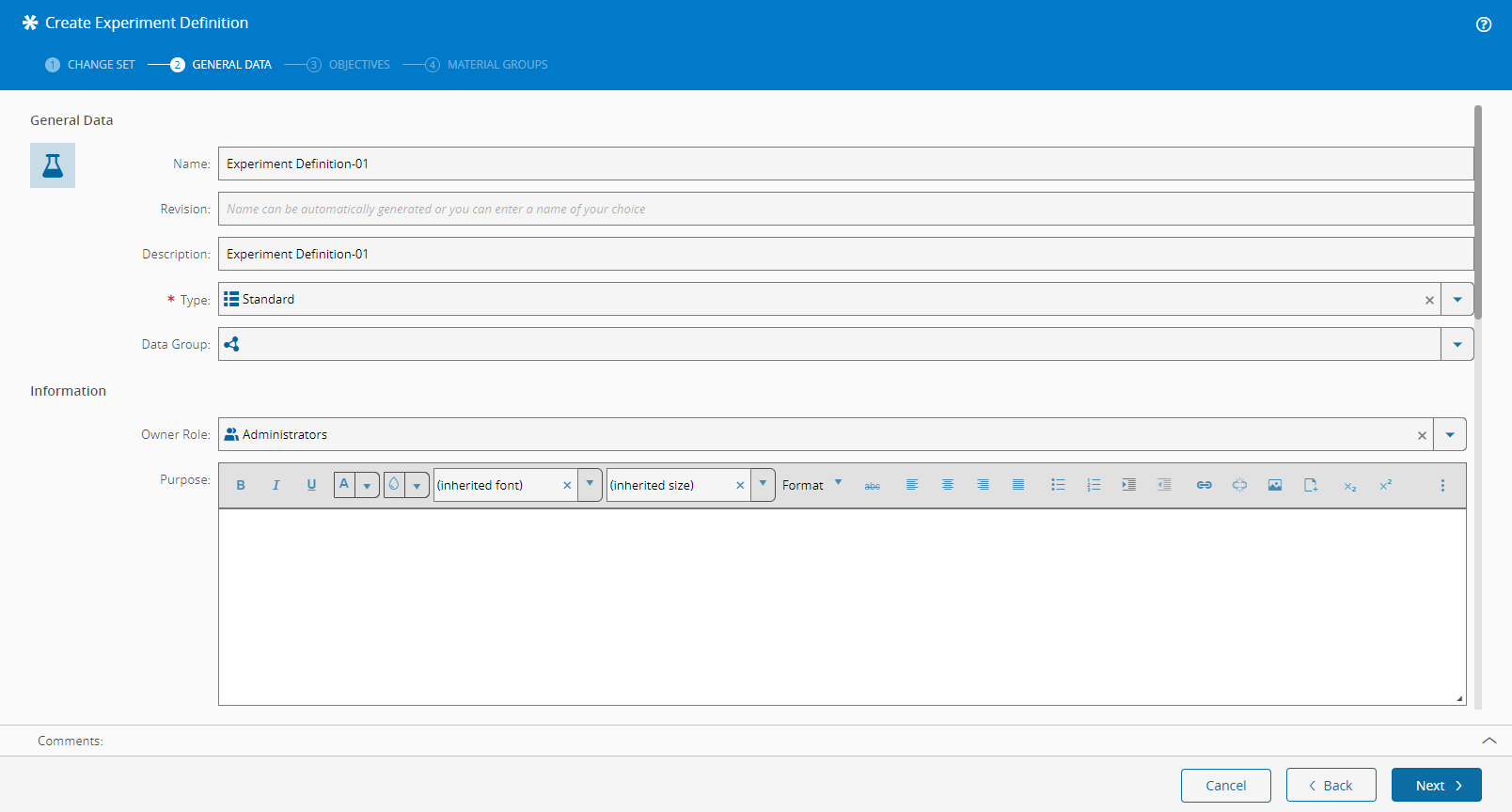 - Planned Start Date - define the planned start date for the execution of the Experiment.