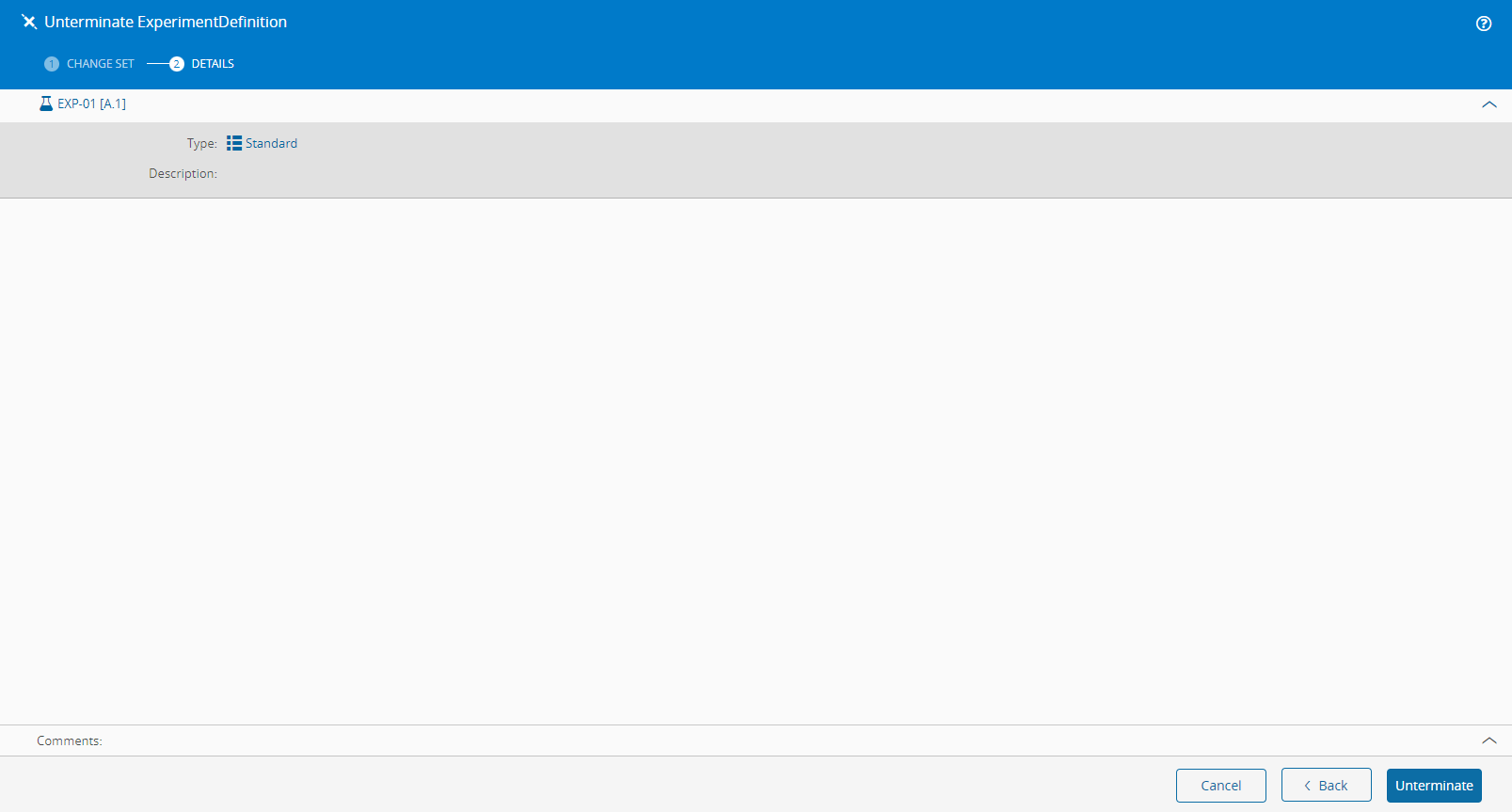 The Unterminate Experiment Definition wizard can be called from the Experiment Definition page within the Business Data Group.