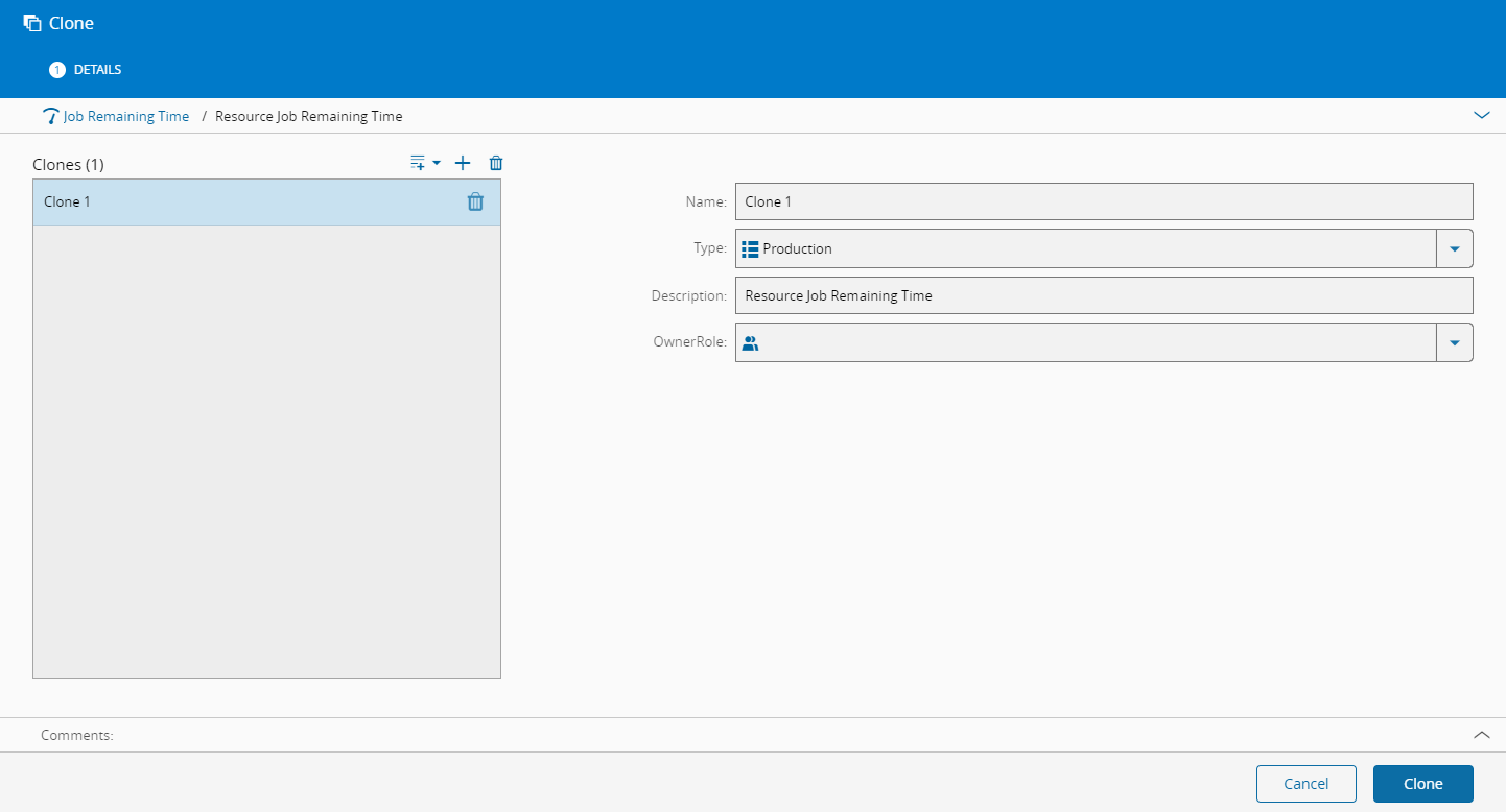 - Press Clone to complete the transaction and a new object will be created.