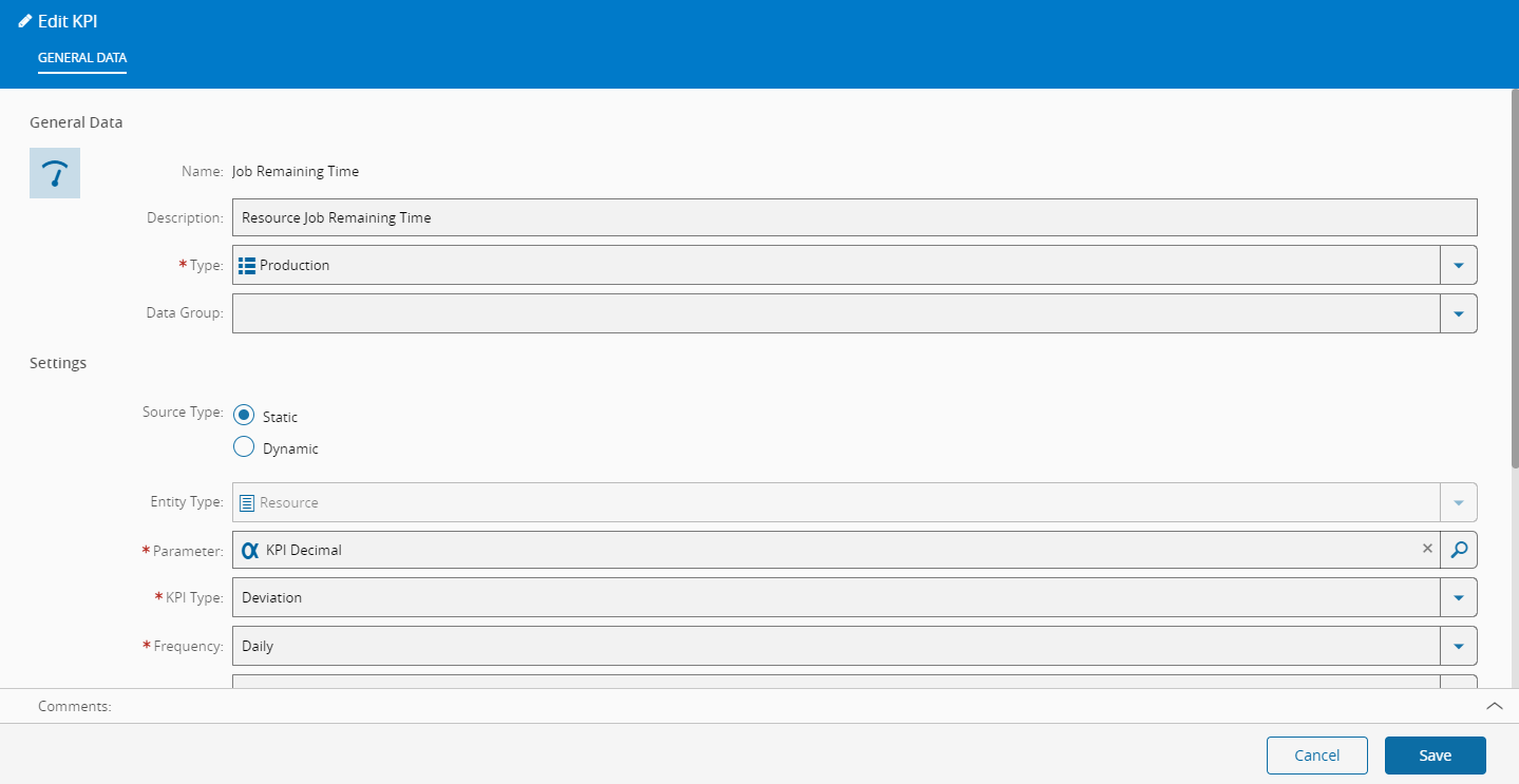 The Edit KPI wizard can be called from the KPI page within the Business Data Group.
