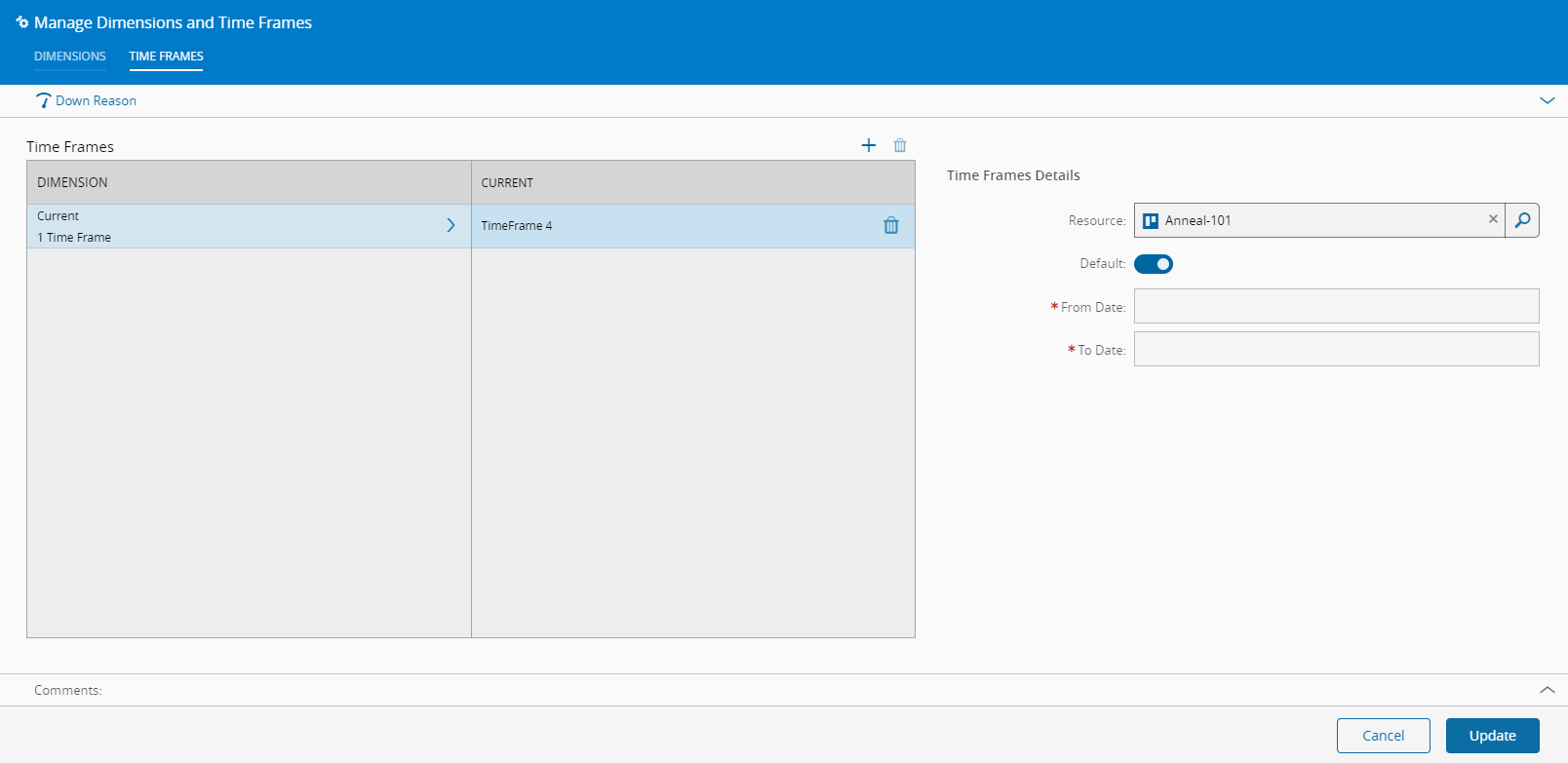 This operation is used to modify the KPI's dimensions and time frames, i.e, the scope and time variations of the specific KPI.