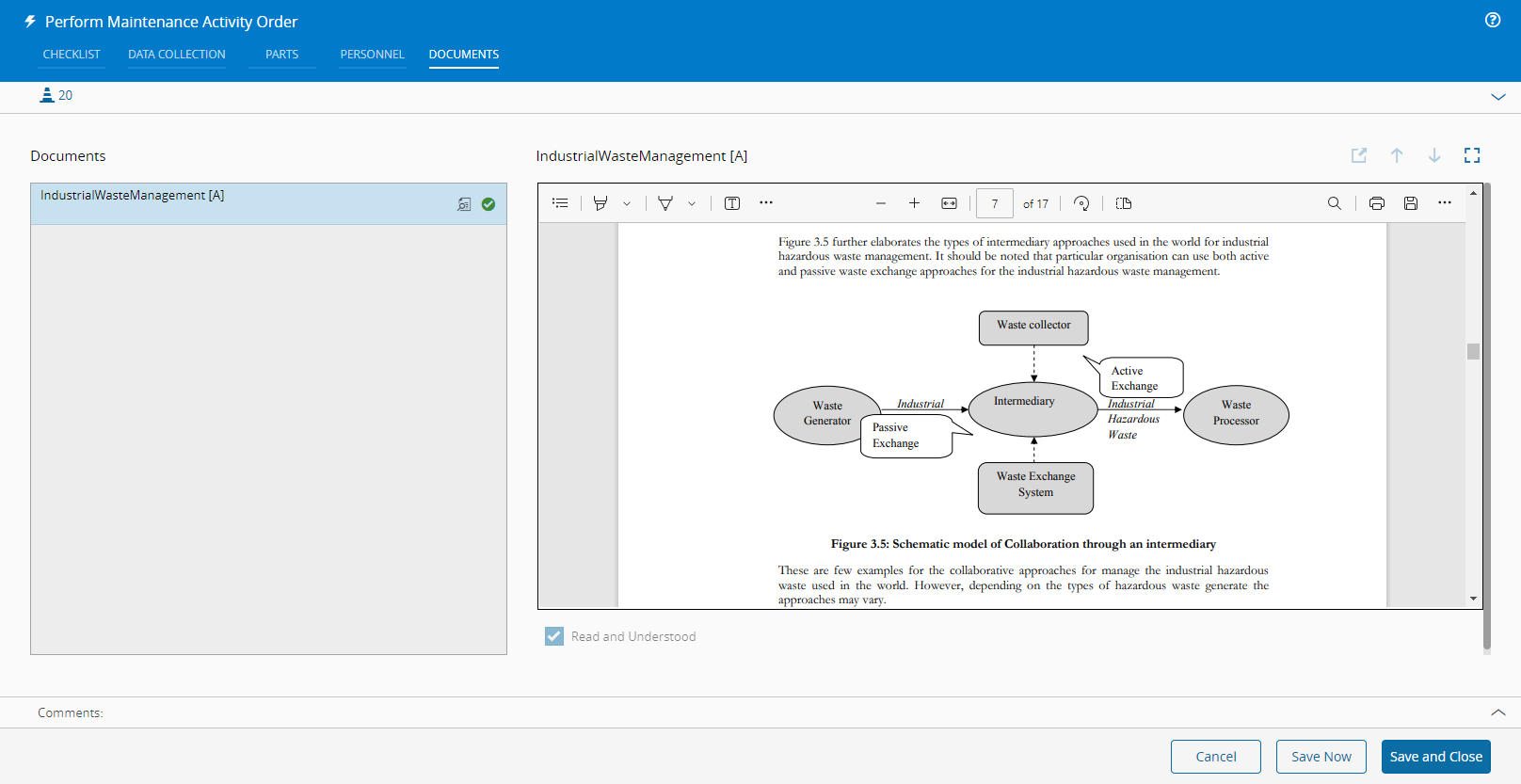 If the MAO has any associated Documents, they are displayed in this panel. If the document requires to be marked as read and understood, you must check the appropriate box before completing the operation.