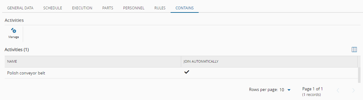 - Add or remove as many Maintenance Activities as desired selecting the option Join Automatically if it's intended that the system joins the two MAOs automatically whenever there's an overlap in the schedule (given by the early due - late due interval). Note that it's always possible to join and separate the MAOs later manually.
