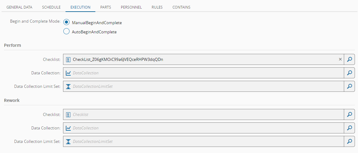 - Optionally define a Checklist (must be of scope Maintenance Management) to be performed as part of the normal maintenance. If the begin and complete mode is manual, it's necessary to specify a Checklist to be performed.