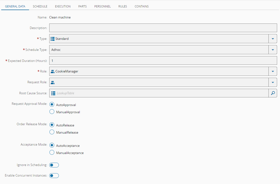 - Specify whether the Maintenance Activity Order release mode is automatic or manual.