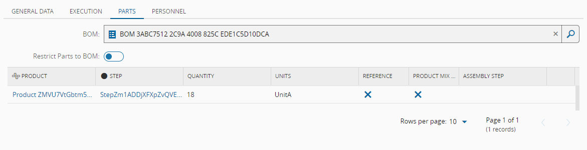 The parts tab define the bill of parts, expressed as a Bill-of-Materials (BOM), for the maintenance task. It's necessary to define: