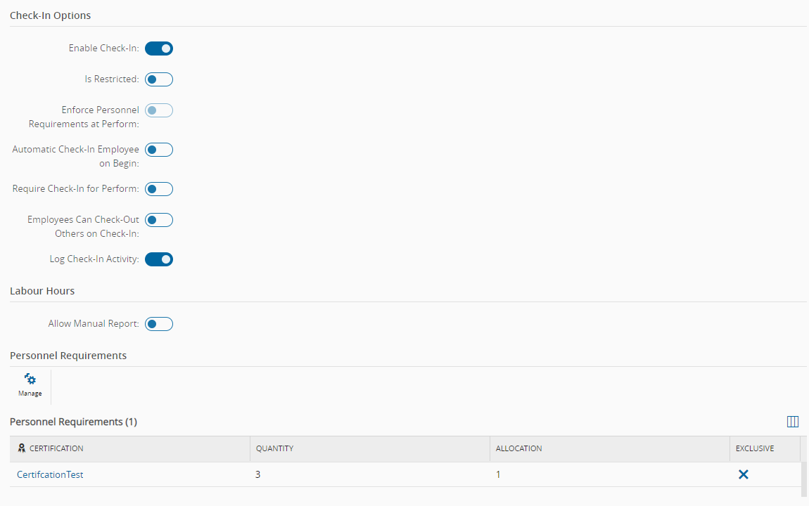 - Select Enforce personnel requirements at perform to only allow Perform MAO to take place if all Personnel Requirements are met.