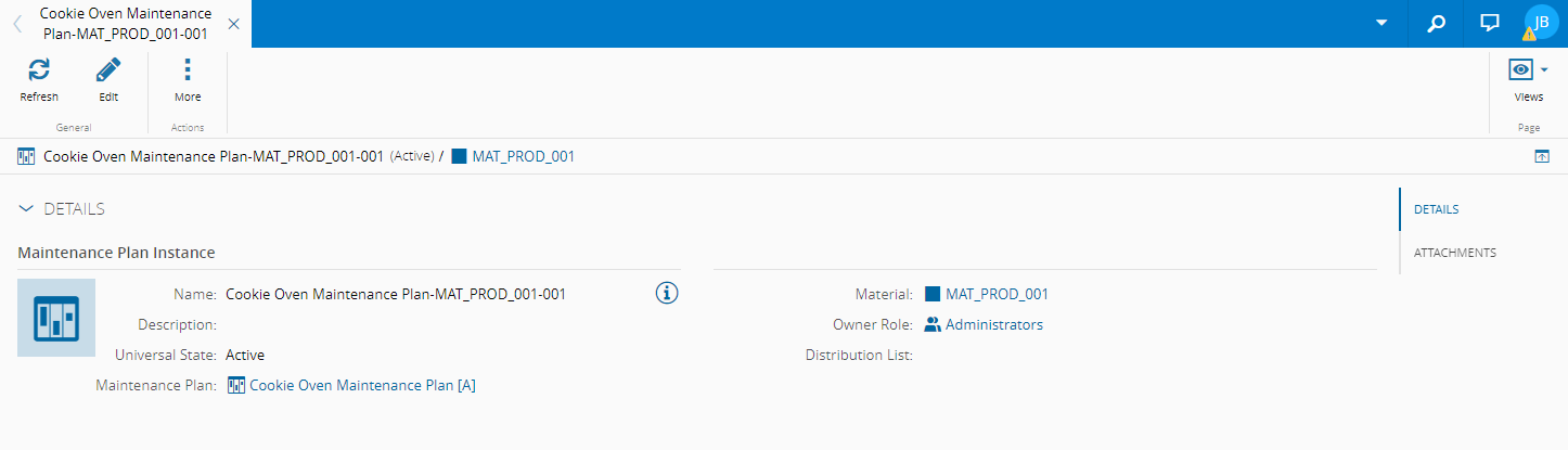 - Attachments - shows the documents that are attached to the Maintenance Plan Instance and enables the user to attach additional documentation to the Maintenance Plan Instance.