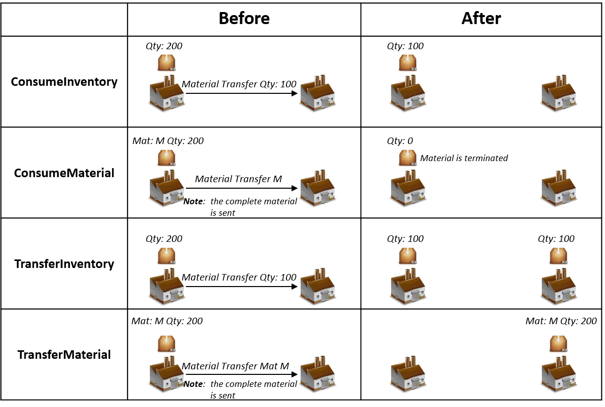 There are four main MaterialTransfer Modes, defined at the Product Level, which are illustrated in the next picture.