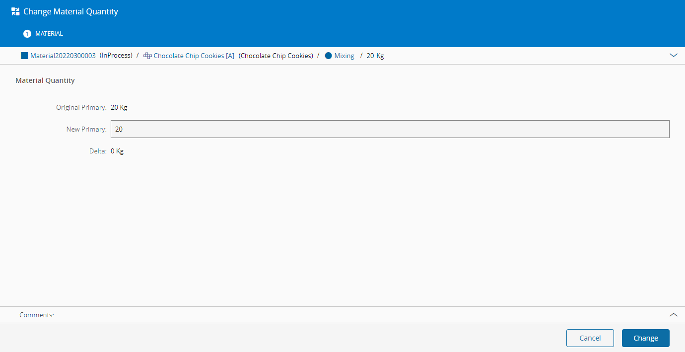 - If the Material is a Sub-Material, the Change Quantity operation is not allowed.