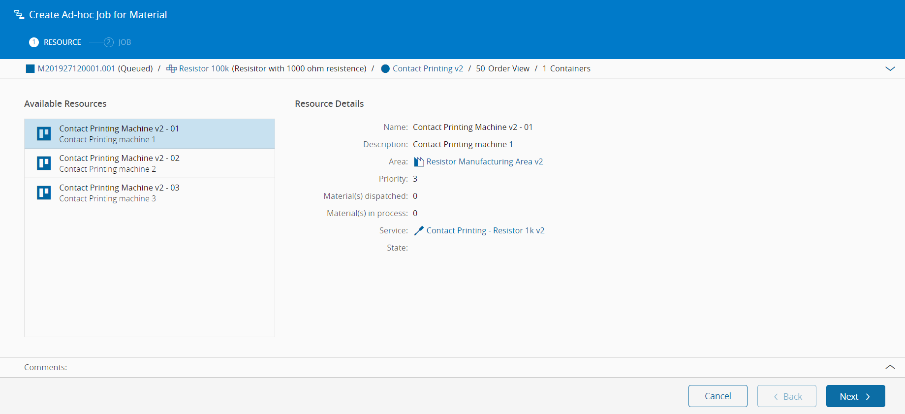 - From the available resources, select the resource where the job must be created.