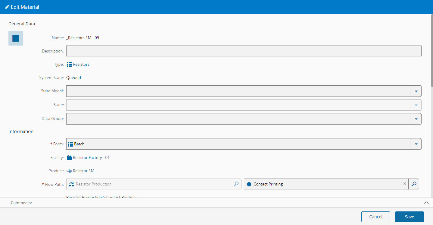 - The Material exists in the system.