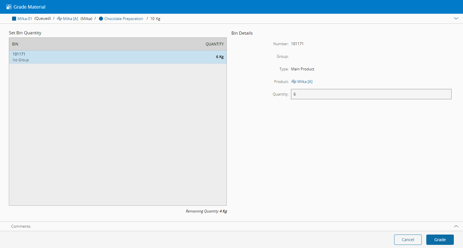 A Material is graded based on the Product Binning information.