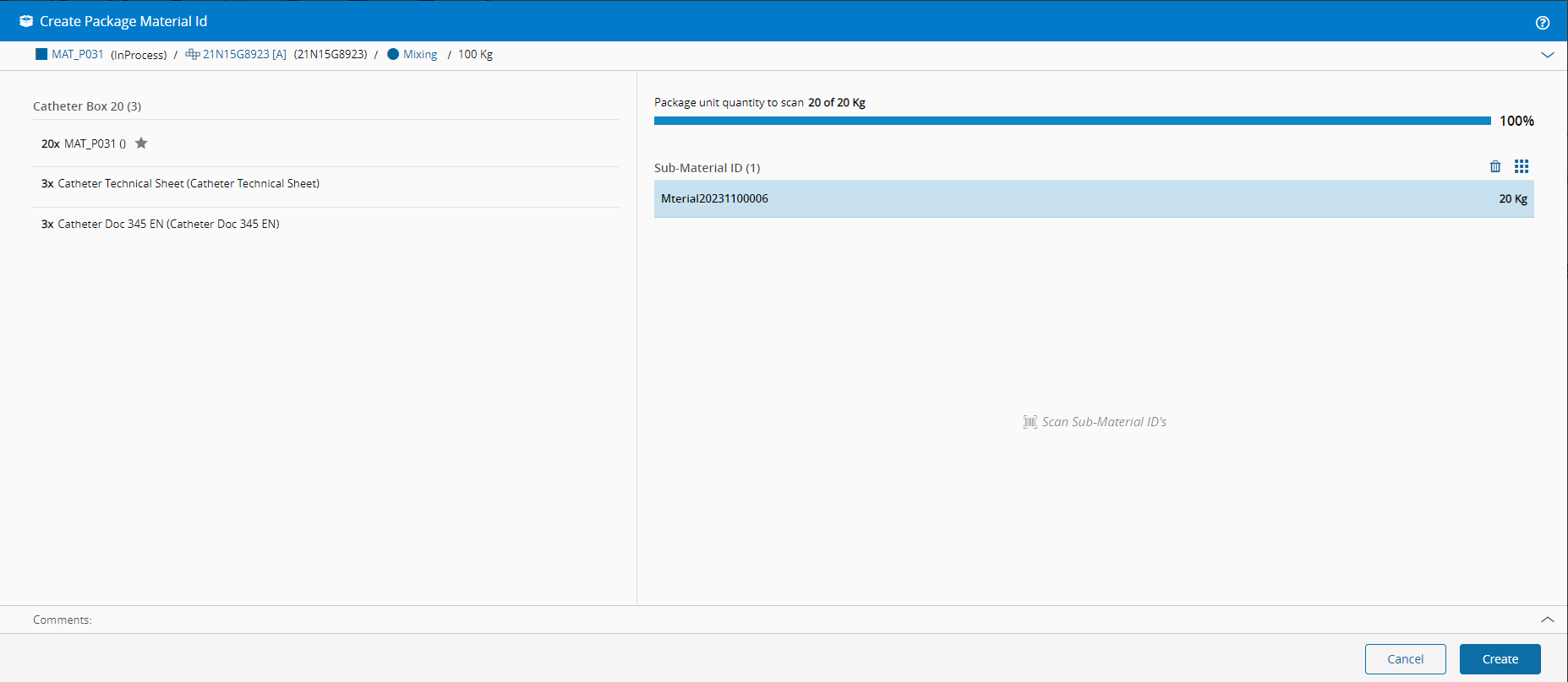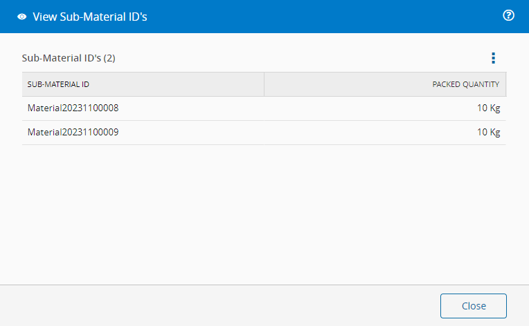 Scan the Sub-Material IDs or use the manual Insert Barcode and select OK.