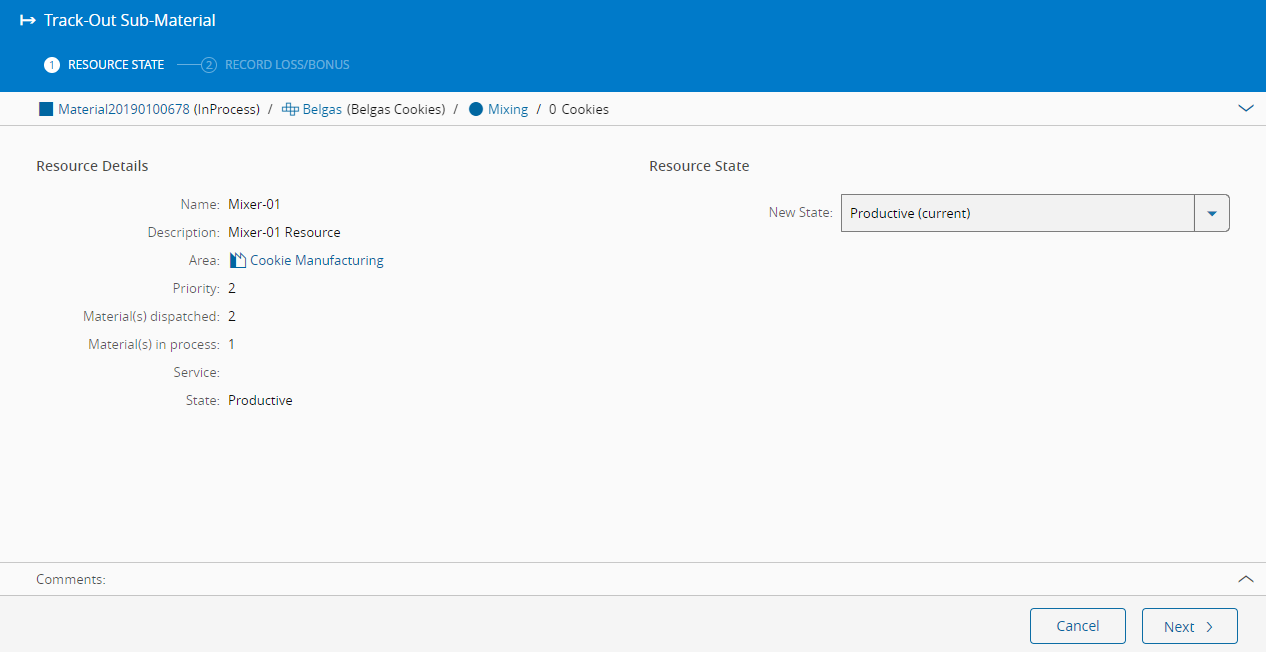 - The Resource from which the Sub-Material is being tracked out is the current Resource.