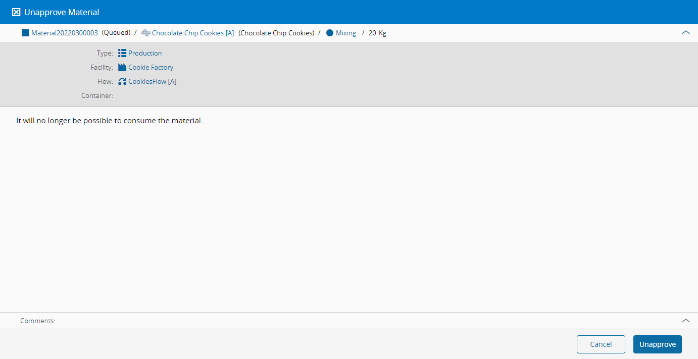 This operation is used to unapprove a Material and make it unavailable to be consumed.