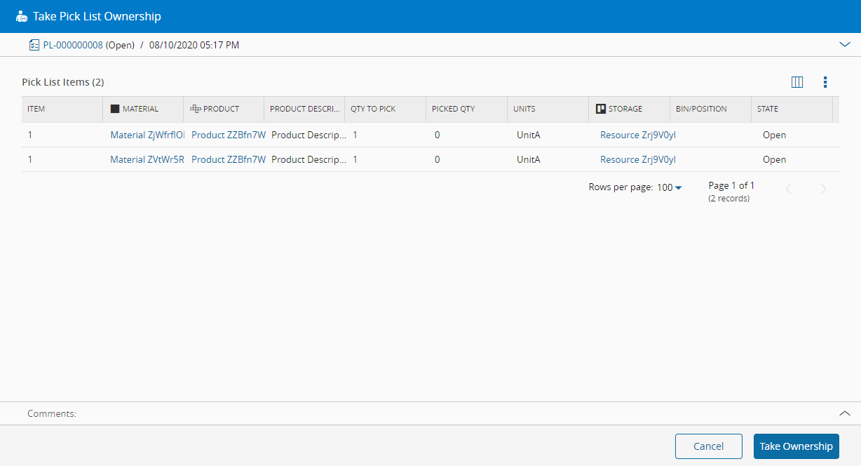 This operation is used to take ownership (responsibility) for picking the Pick List.