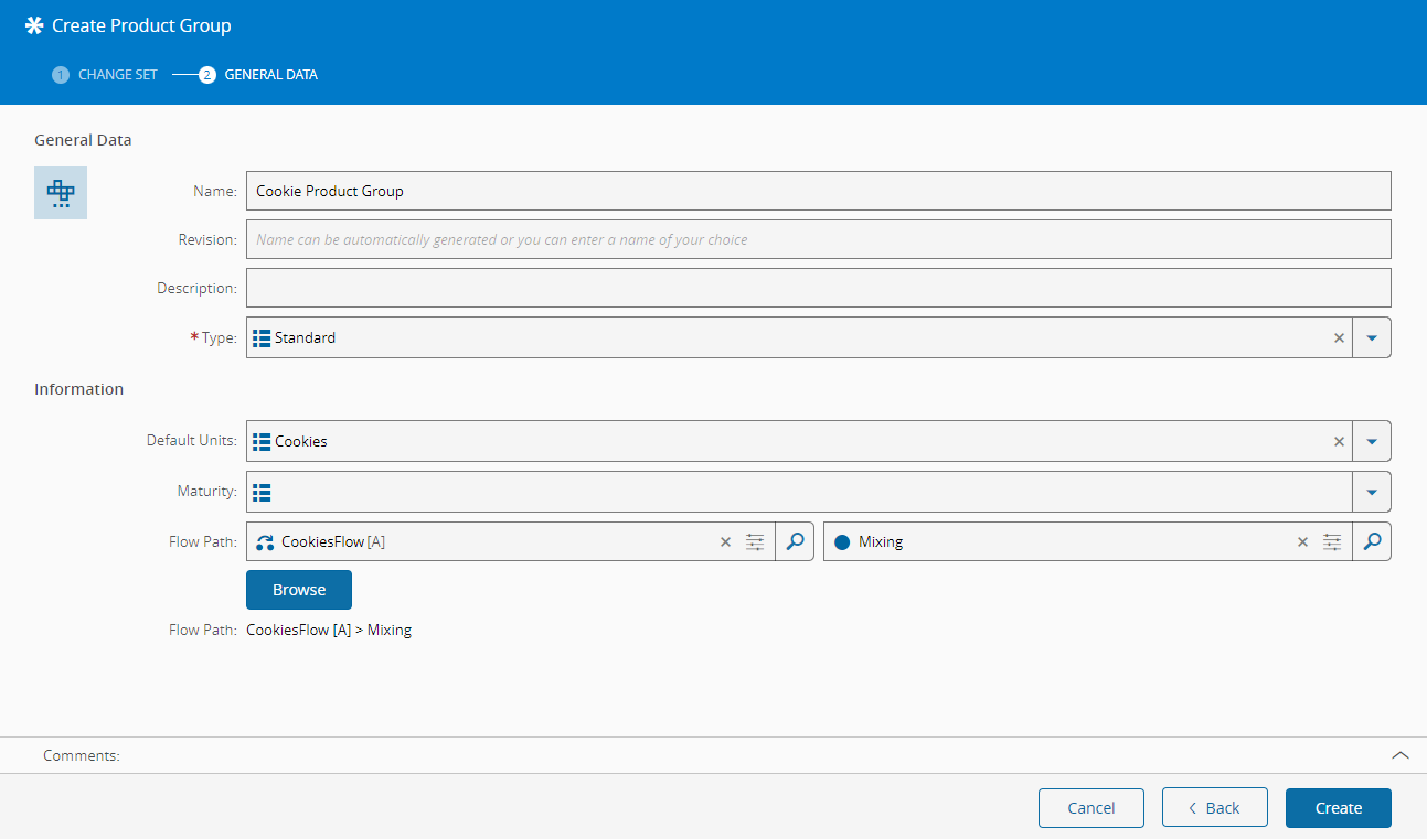- Optionally, specify the default flow path for all the Products of this Product Group.