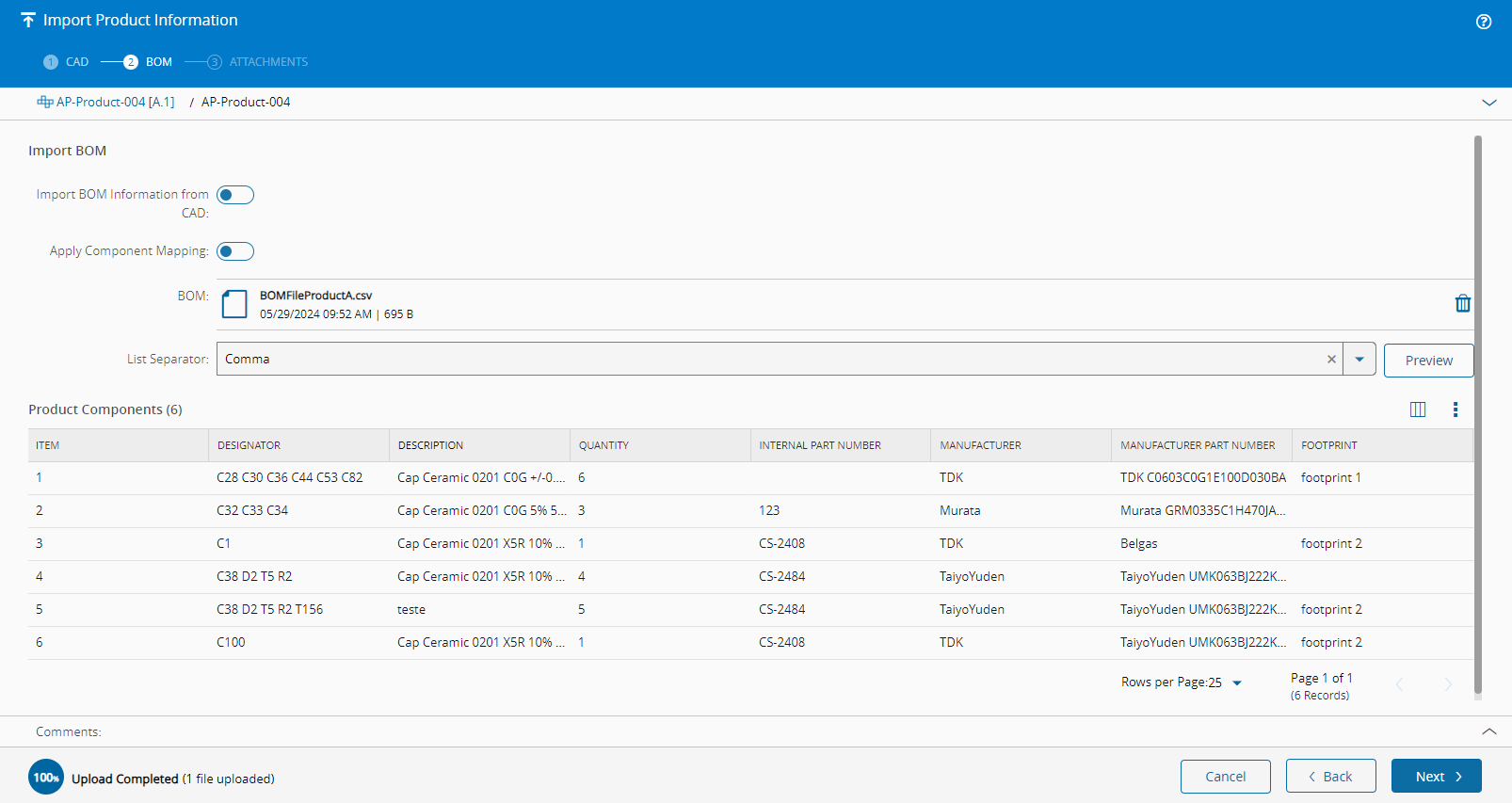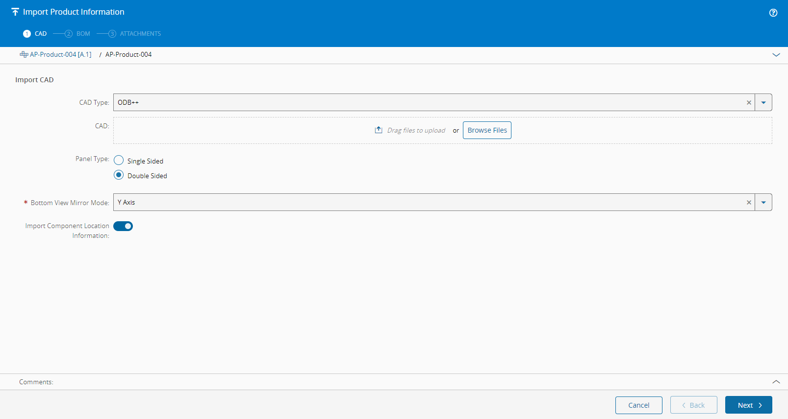 - If the CAD file includes the BOM, you can select if you want to Import BOM Information from CAD.